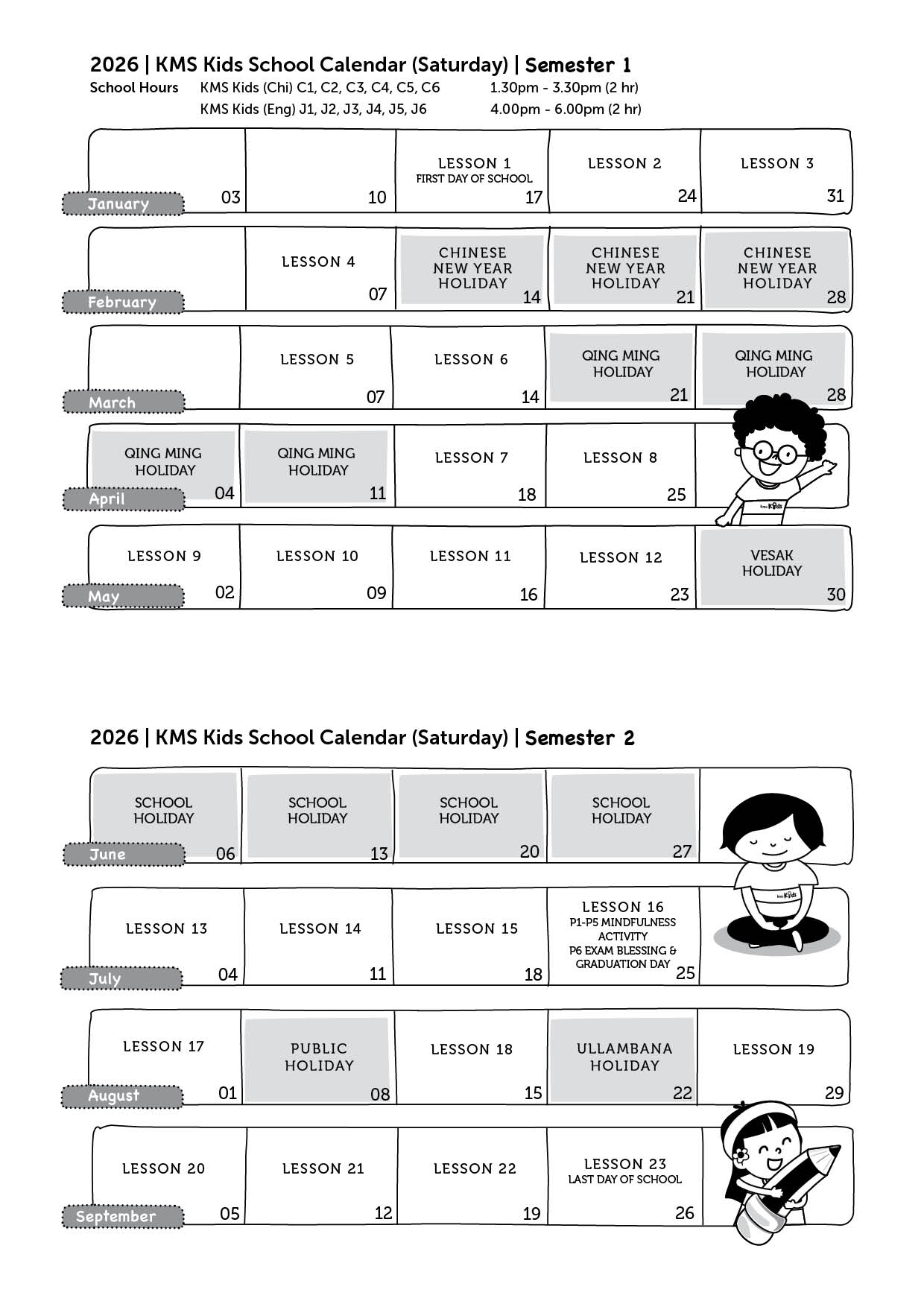 KMS Dharma School Calendar 2026